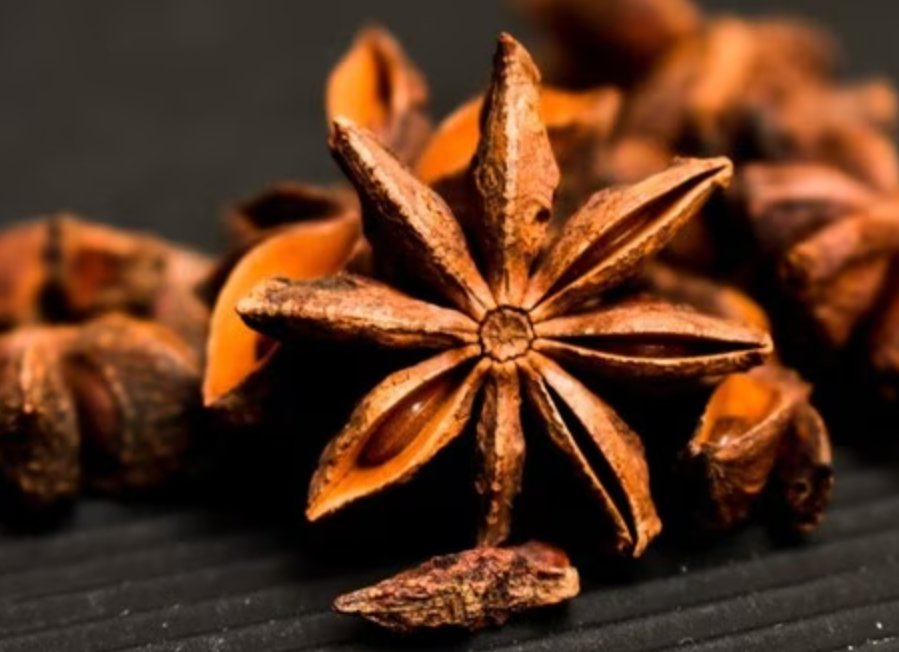 Star anise has a distinct star shape and sweet licorice-like aroma.